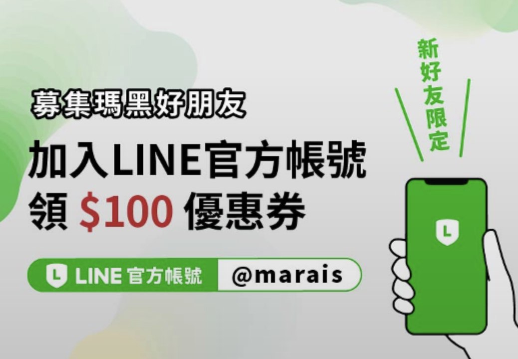 優惠資訊:加入 LINE 帳號,領優惠券!